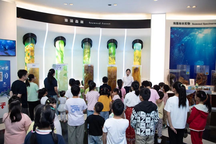與此同時,孩子們在講解員的陪伴下,參觀了中國海藻科技館與海藻部落,通過互動體驗、科普講解等形式,近距離感受了海藻的神奇魅力與廣泛應用。那些色彩斑斕、形態各異的海藻標本,以及通過高科技手段展現的海藻生長過程,讓孩子們瞪大了眼睛,滿是好奇與驚嘆,對海洋的奧秘充滿了無限向往。