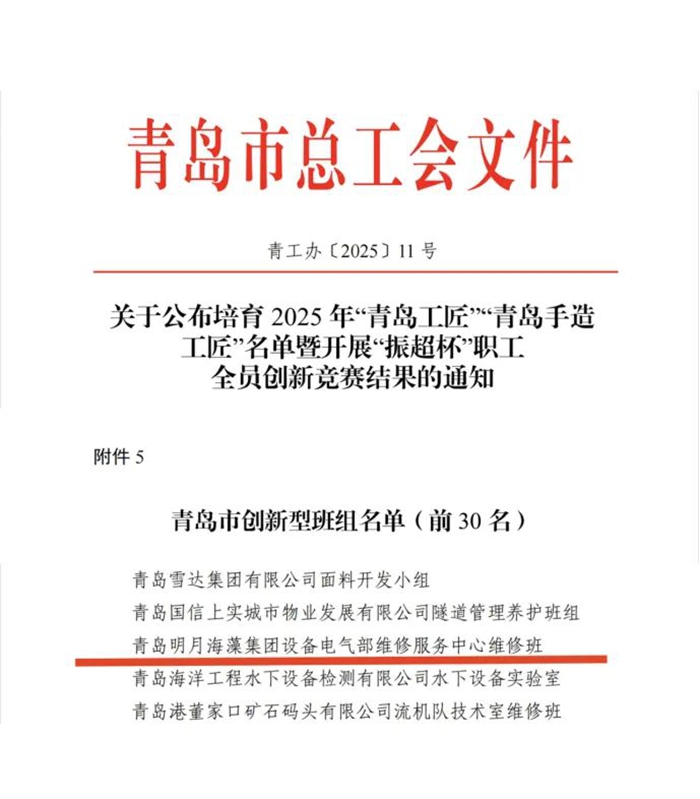 此次獲獎并非偶然,而是明月海藻集團長期深耕創(chuàng)新文化、持續(xù)推進產(chǎn)業(yè)工人隊伍建設(shè)改革的必然成果,也是該班組繼獲評青島市工人先鋒號、西海岸新區(qū)“創(chuàng)新型班組” 等榮譽后的又一重要突破。一直以來,集團著力構(gòu)建“創(chuàng)新之家”培育體系,通過STA培訓(xùn)、班組長特訓(xùn)、勞模工匠創(chuàng)新工作室等平臺持續(xù)賦能基層創(chuàng)新。維修班的創(chuàng)新實踐,正是對集團“以新質(zhì)生產(chǎn)力引領(lǐng)海藻健康產(chǎn)業(yè)創(chuàng)新升級”發(fā)展目標的生動呼應(yīng),為海藻活性物質(zhì)的高附加值開發(fā)提供了有力支持。