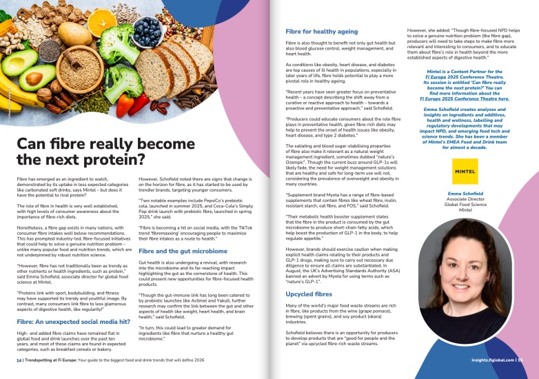The Fi Europe Trend Guide 2026中,膳食纖維被預測為下一個蛋白質,并被視為體重管理與健康老齡化的關鍵。